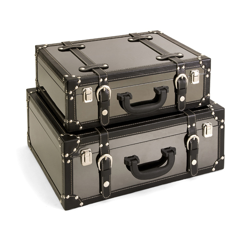 The Tilmas suitcases’ grey stainless steal casing provides a sleek sophistication that makes this set of two perfect for the office or the living room. Black leather buckled straps add a classic dimension to this must-have set of two.