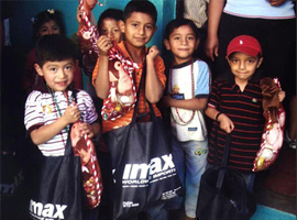 IMAX, working with Buckner Orphan Care International, donated 400 bags to needy children residing in Antigua, Guatemala. The bags were filled with school supplies and distributed in December as part of a larger effort by Buckner to provide desperately needed aid to children in the care of state run orphanages. The children used the bags to help carry their books back and forth to school. A portion of the bags were also given to needy children residing in a mountain village near Antigua.