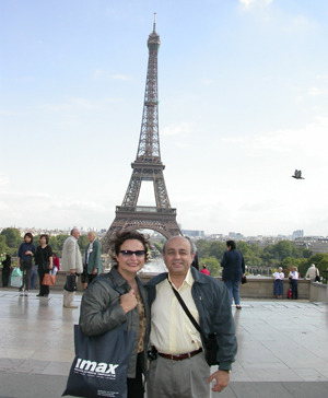 IMAX's Al and Faye Bulak in front of the Eiffel Tower while on vacation in Paris, France.